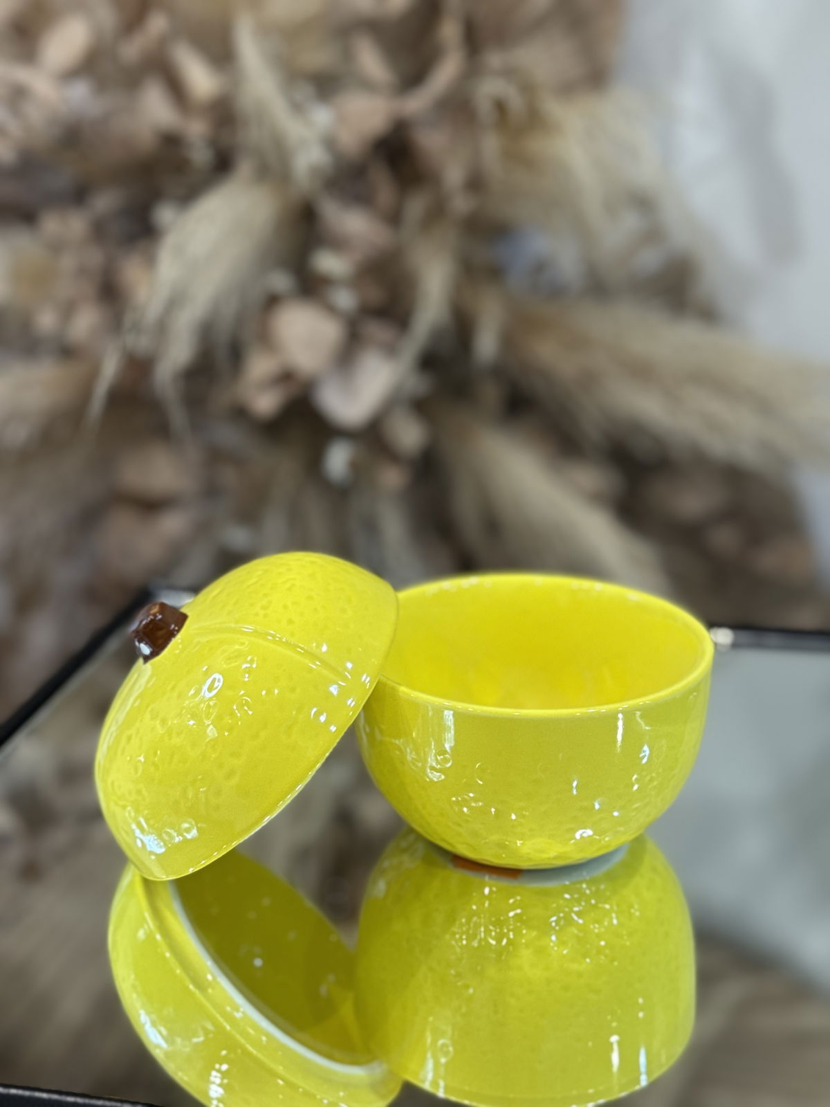 Azucarera de ceramica con forma de limon, tapa encastrable