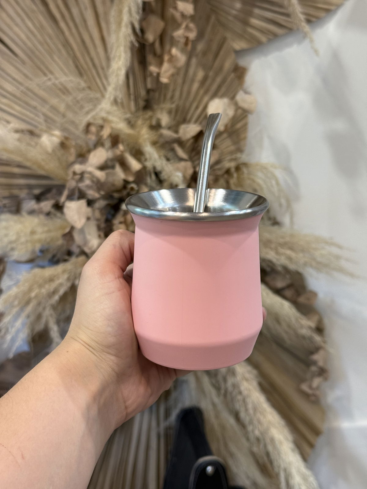 Mate de acero inoxidable doble capa (por fuera pvc), con cámara de aire, térmico y resistente.