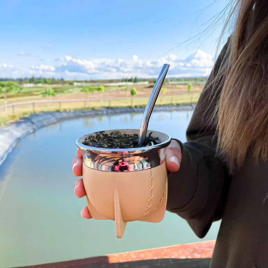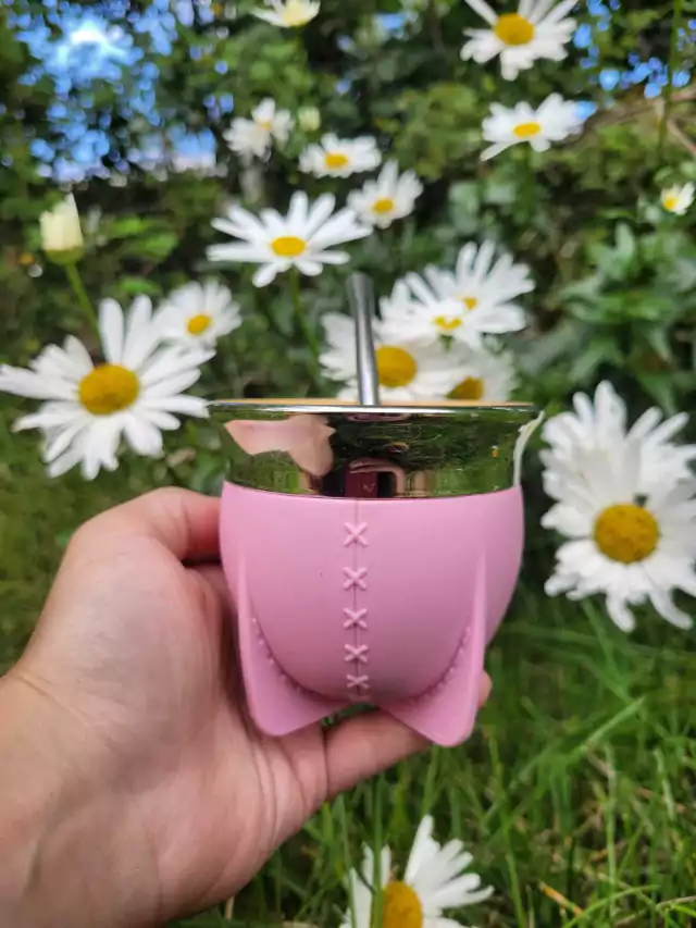 En cuanto a los materiales, el mate es de pvc por el exterior y bpa free apto consumo con cámara de aire en su interior. Lo que lo hace térmico, resistente, cruelty free y moderno sin perder su aspecto esencial.