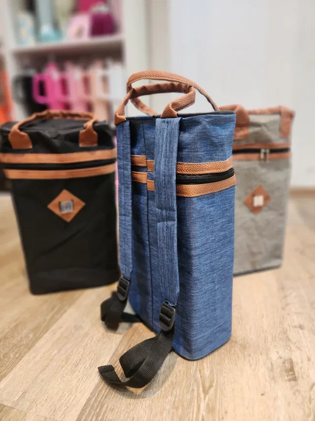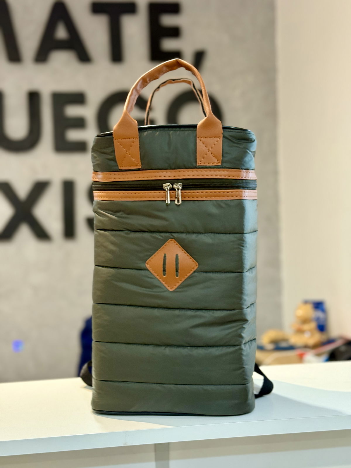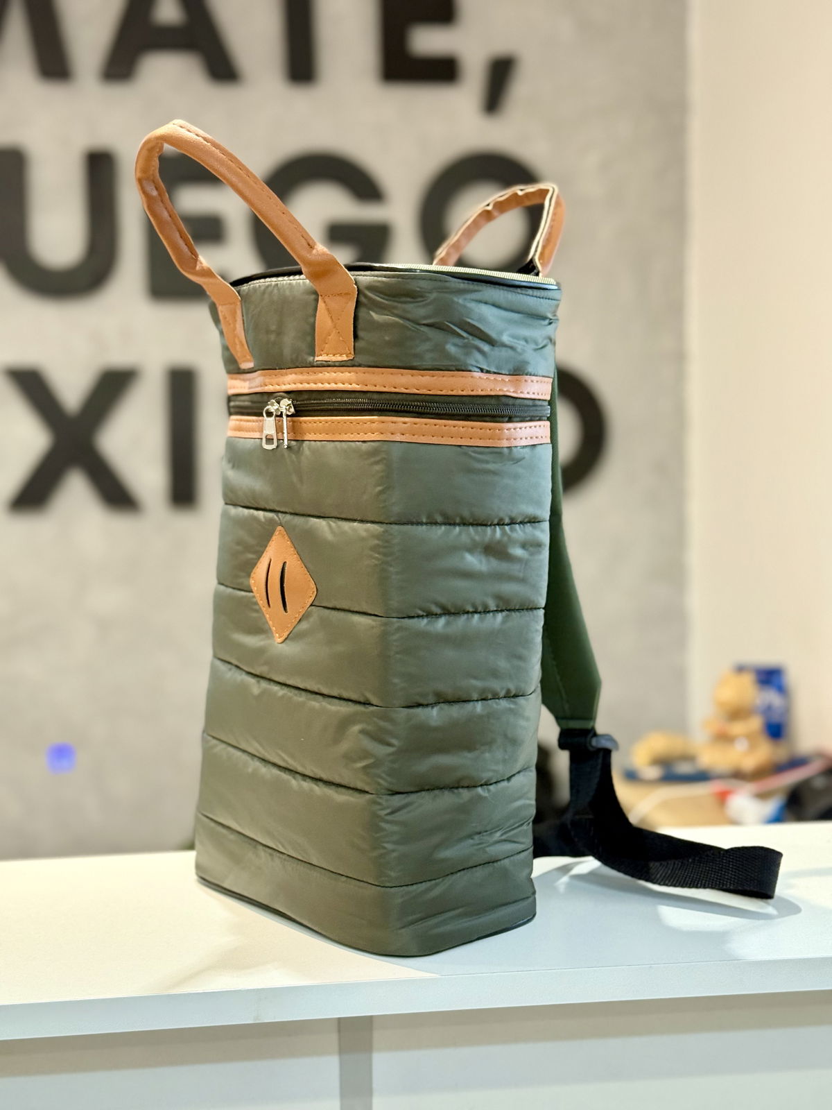 BOLSO VERDE: es distinto modelo, en este no entra el termo de 1,2L sino uno de 1L, es mochila y morran a la vez y trae un elástico interno para colocar el termo y que no se vuelque!