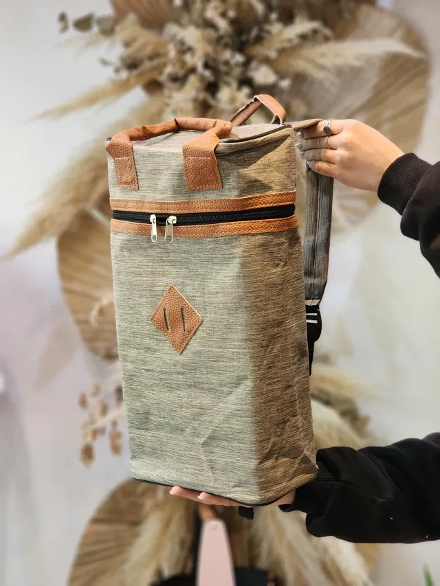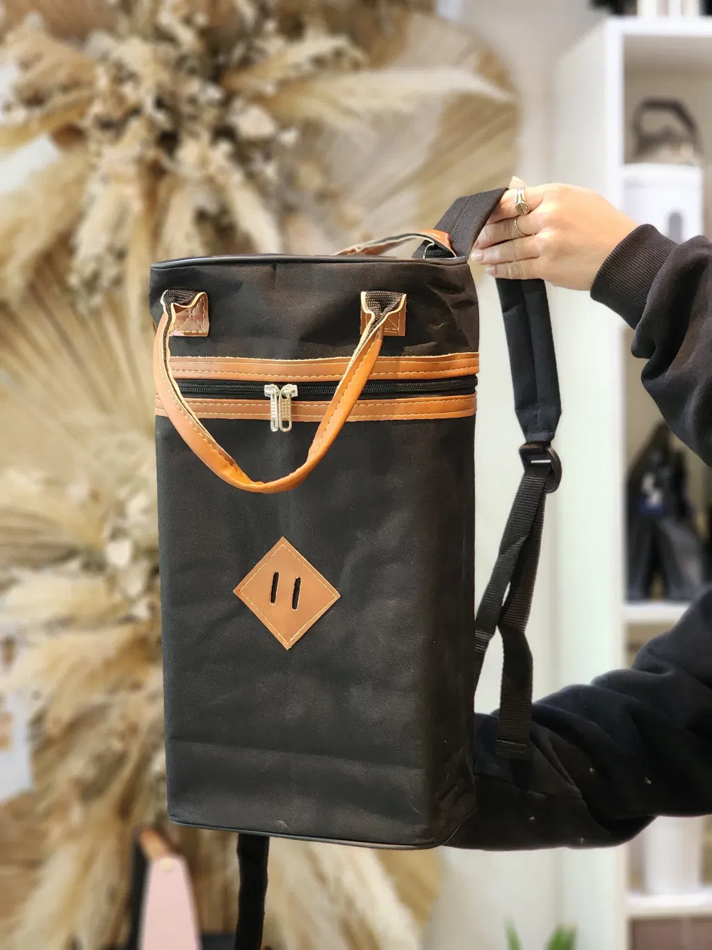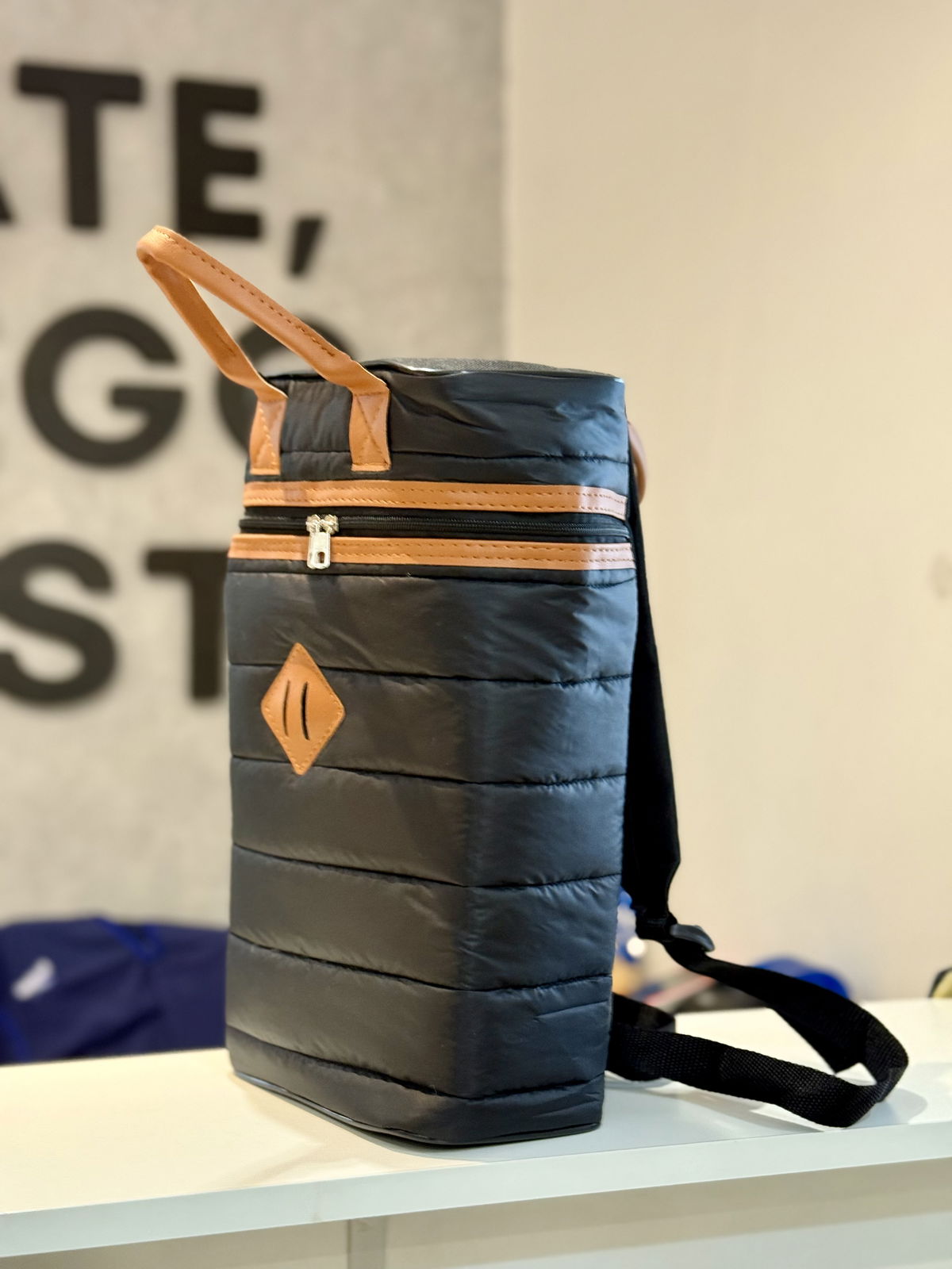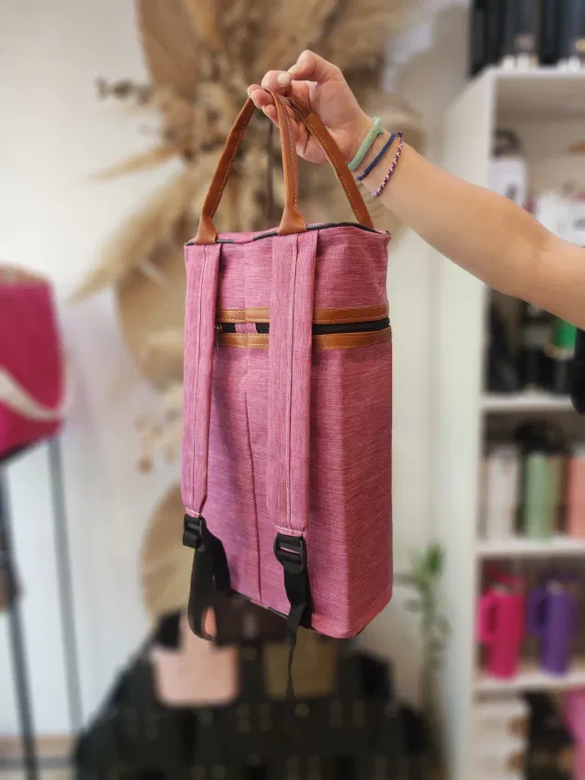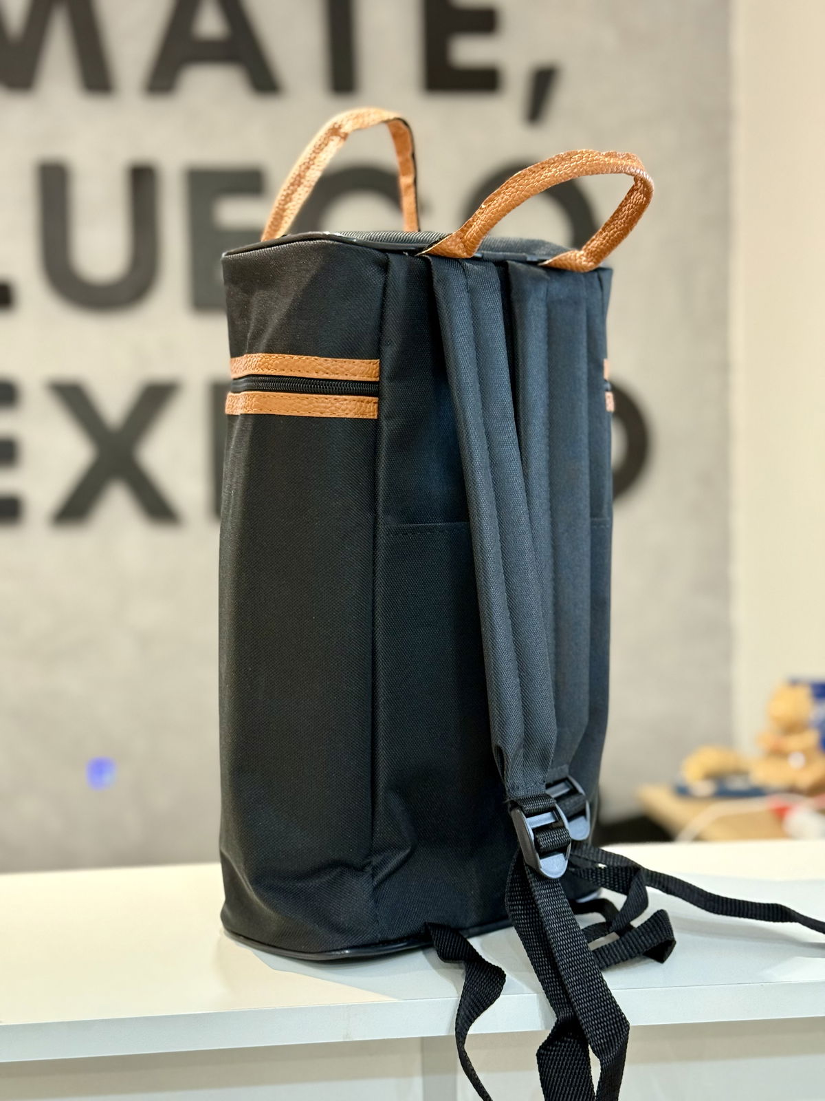 Mochi/bolso matero simple,con cierre y correas de mochila y para sostenerlo. Sus dimensiones son: 35x20x9 aprox (entra termo Stanley 1,2L ).