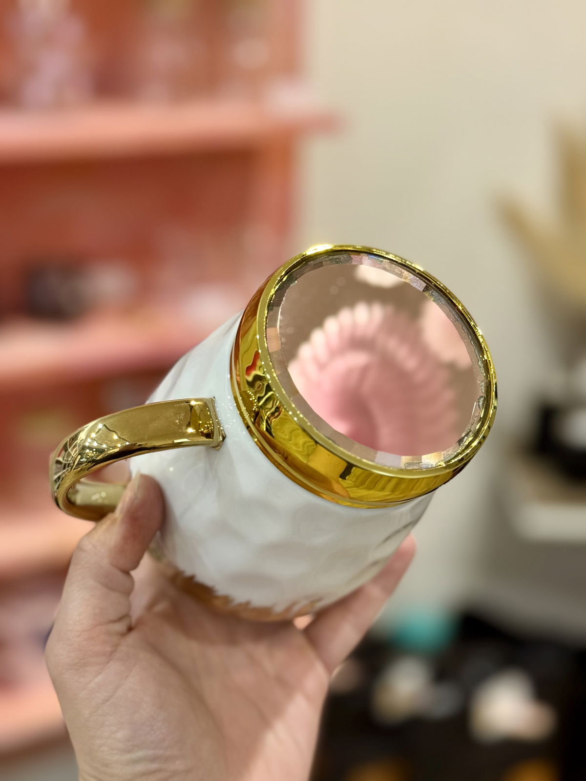 Taza cerámica con tapa espejo