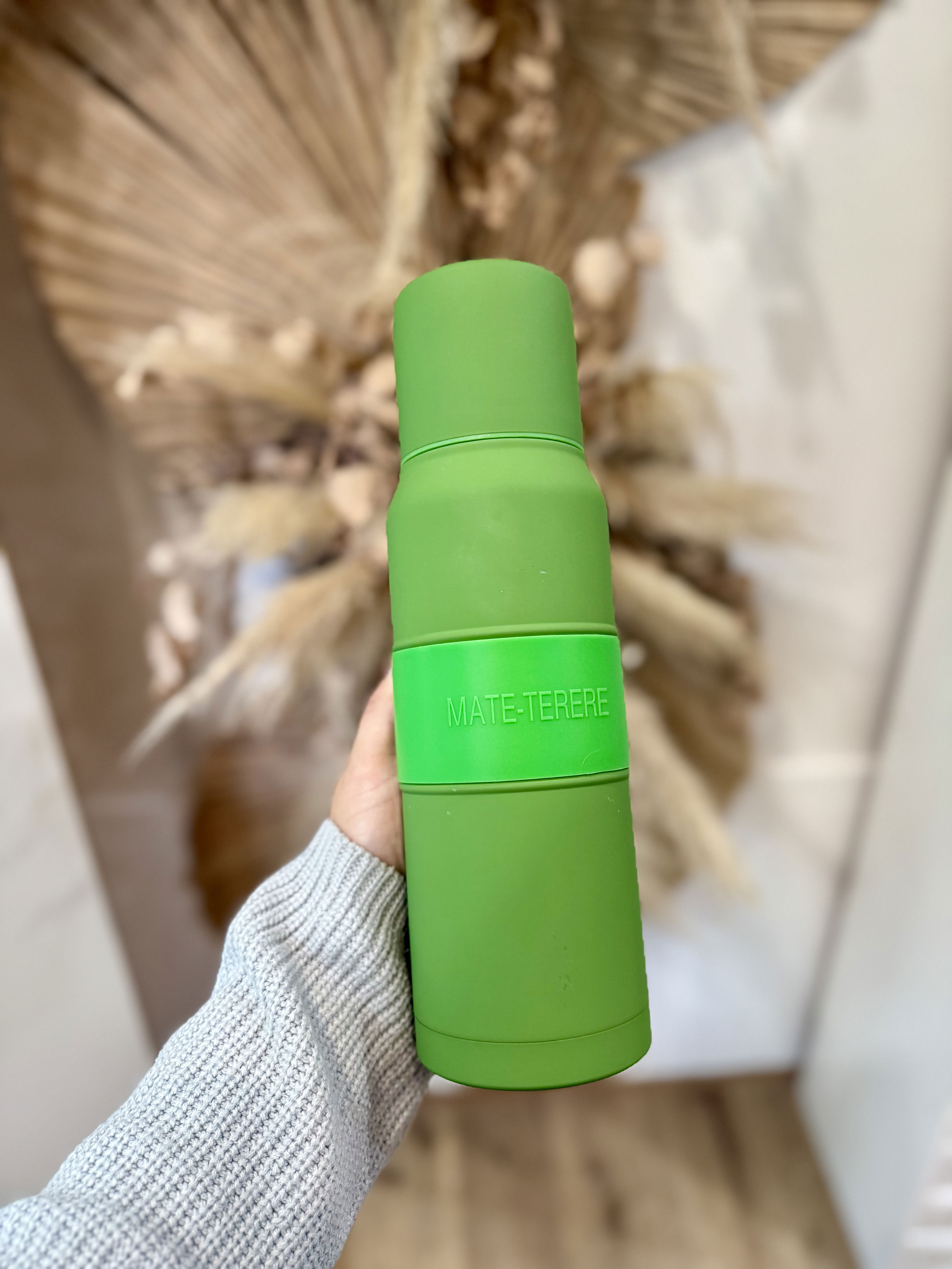 Es un termo con un mate integrado, unificando la acción del cebado.