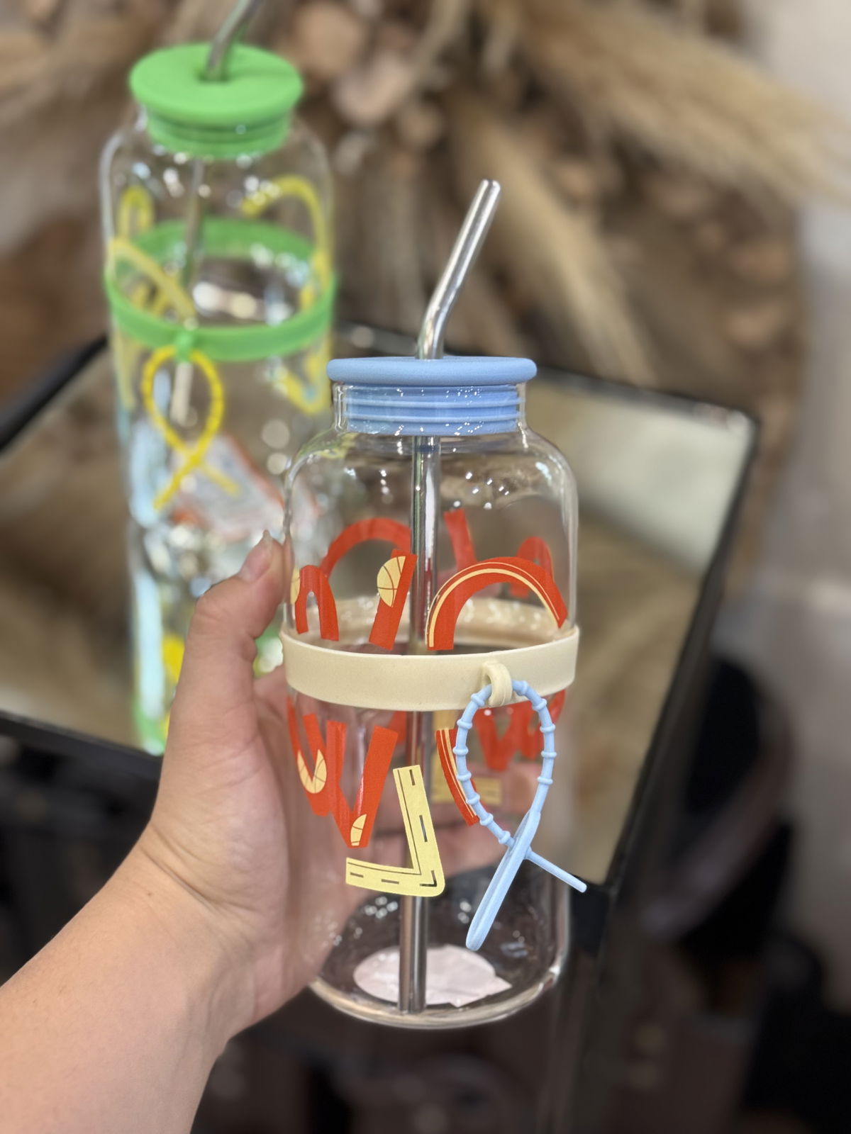 Botella de vidrio con sorbete