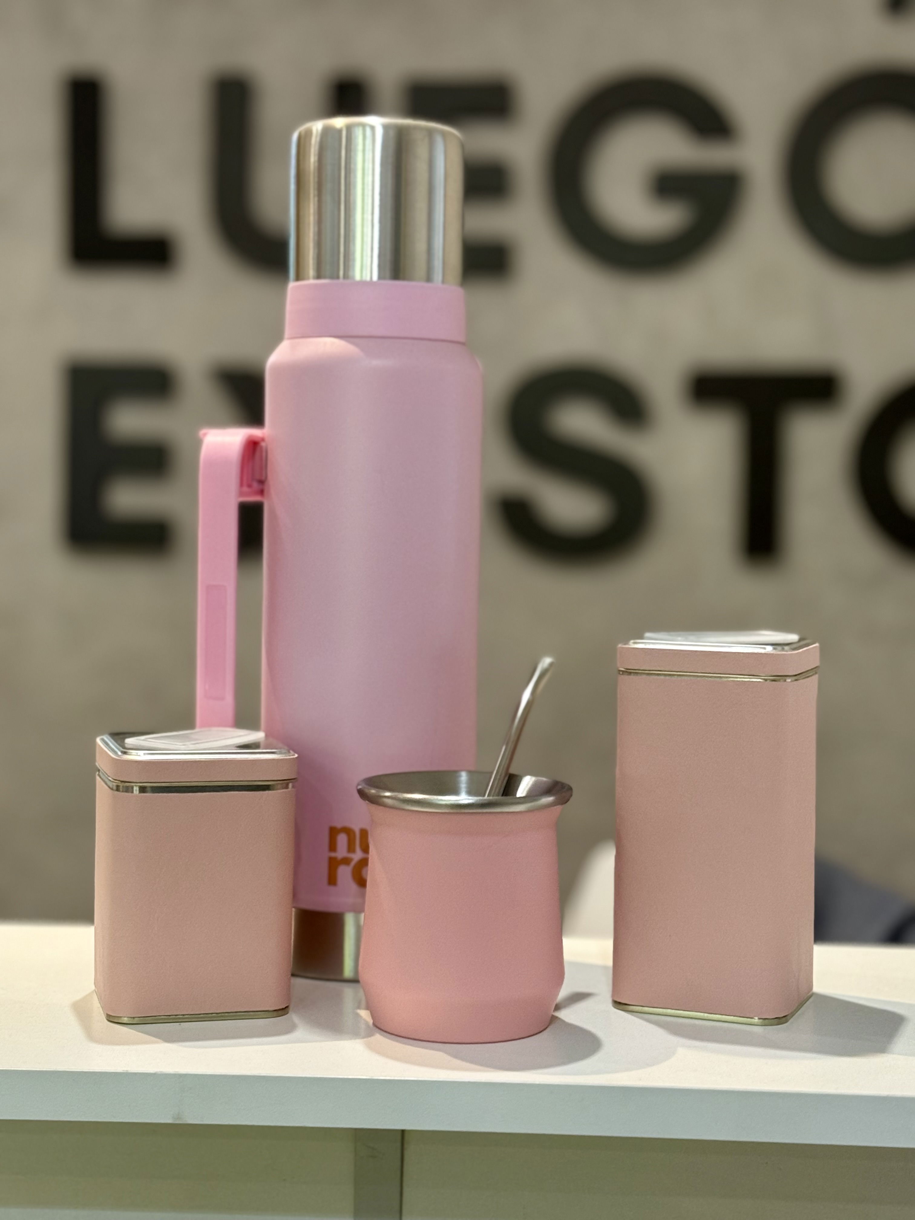 Termo acero inoxidable 304 1,2L/1L con manija retractil y pico cebador, 24hs de duración frío- calor