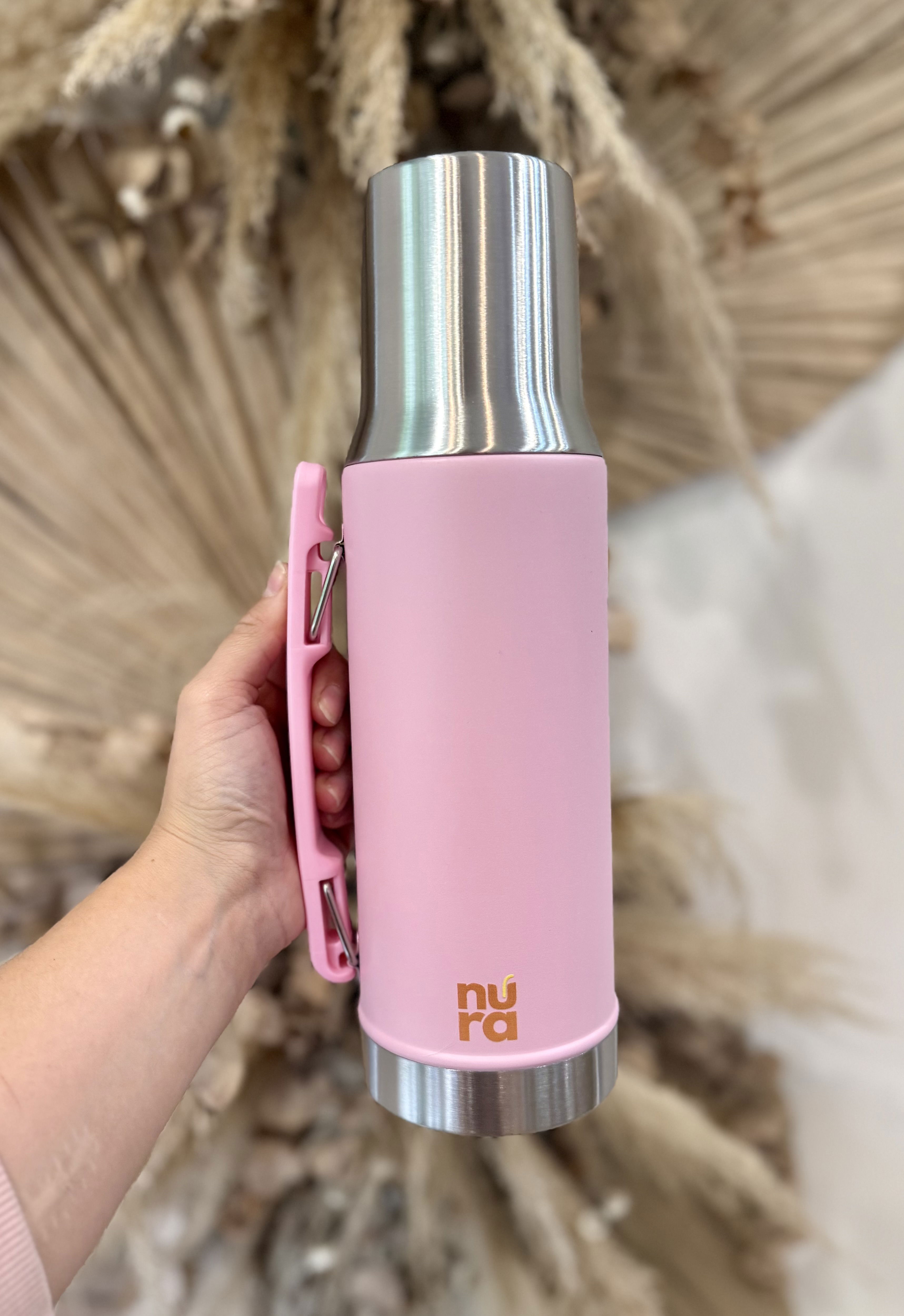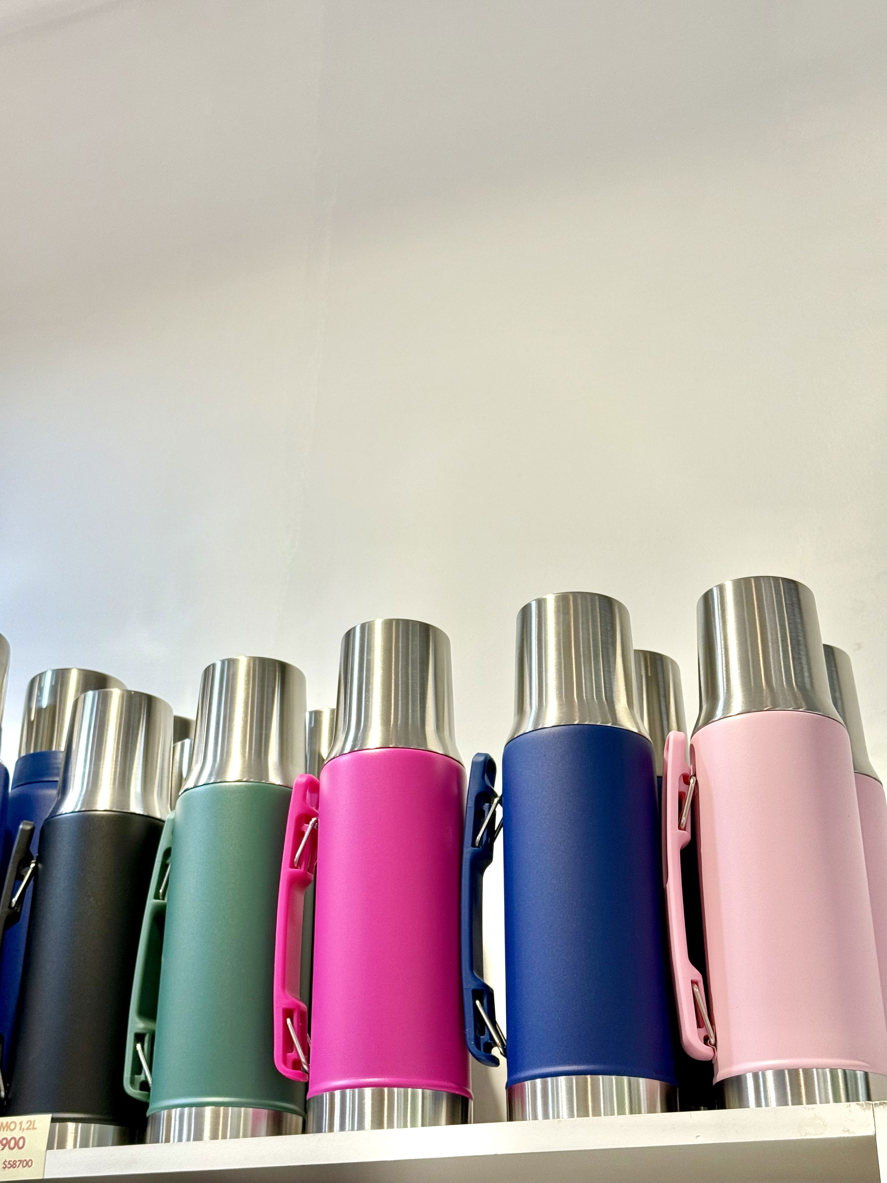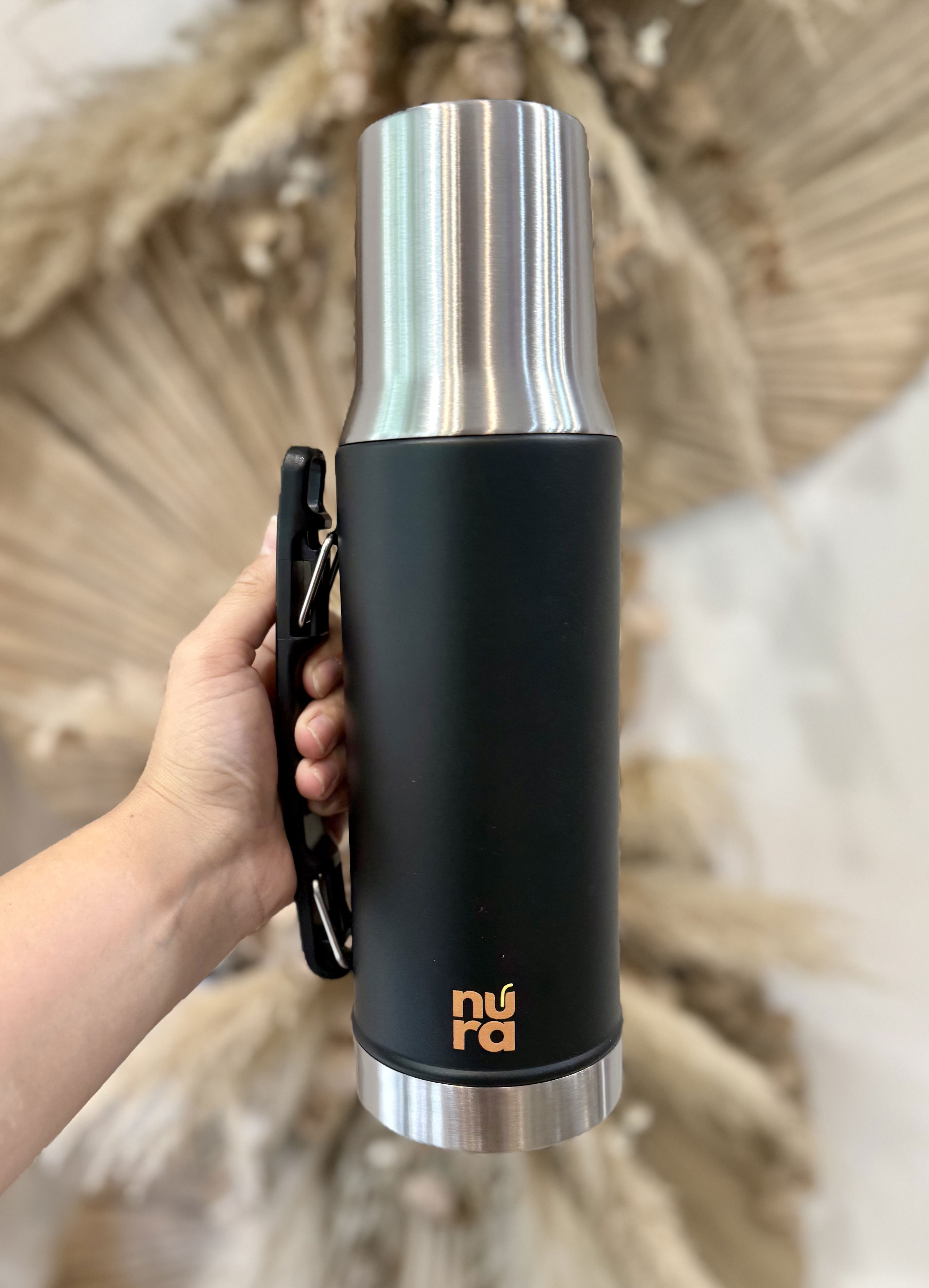 Termo de acero inoxidable tipo system, su tapa es un mate de acero inoxidable doble capa que no se cura y no genera hongos! Todo en uno