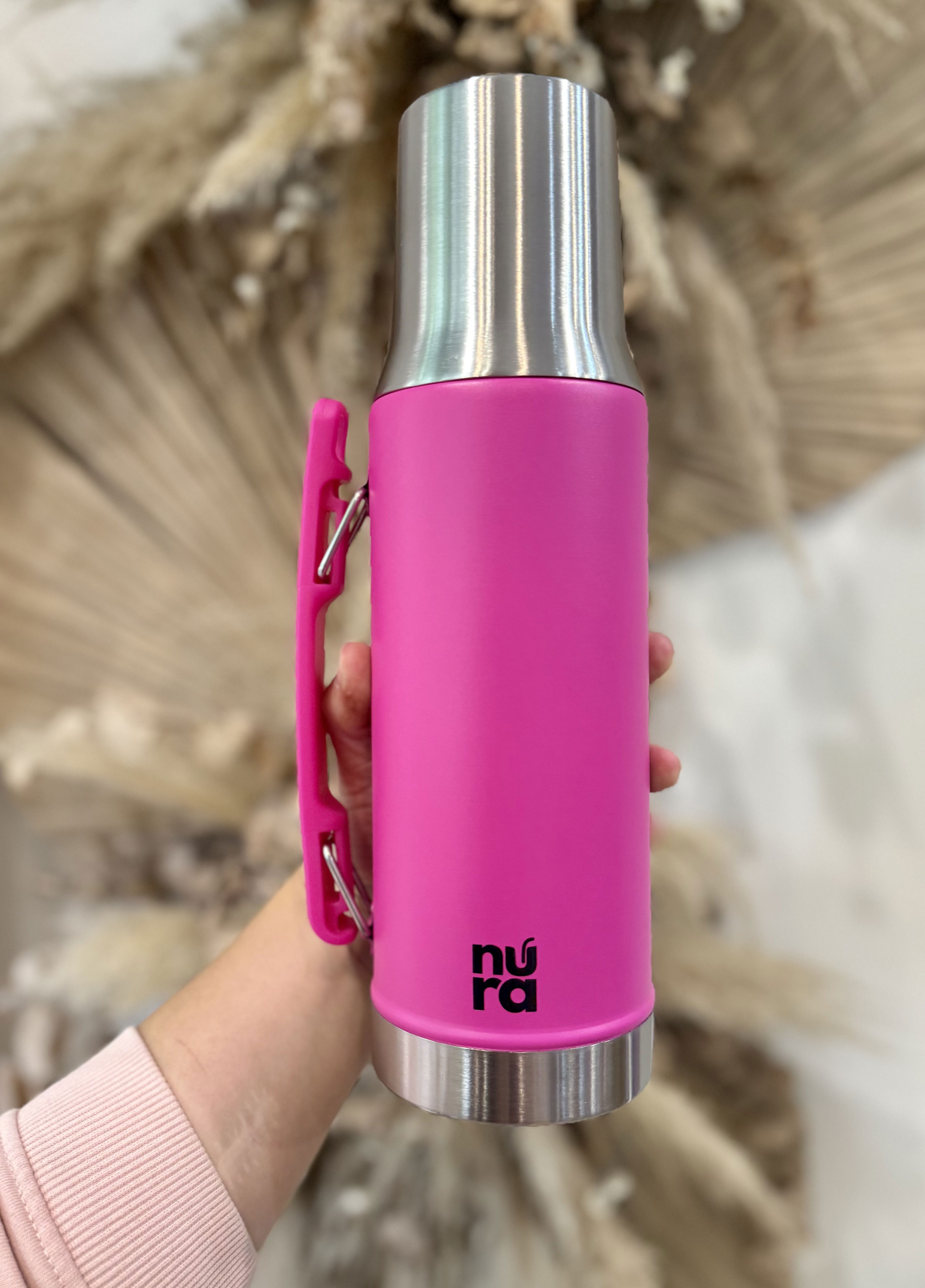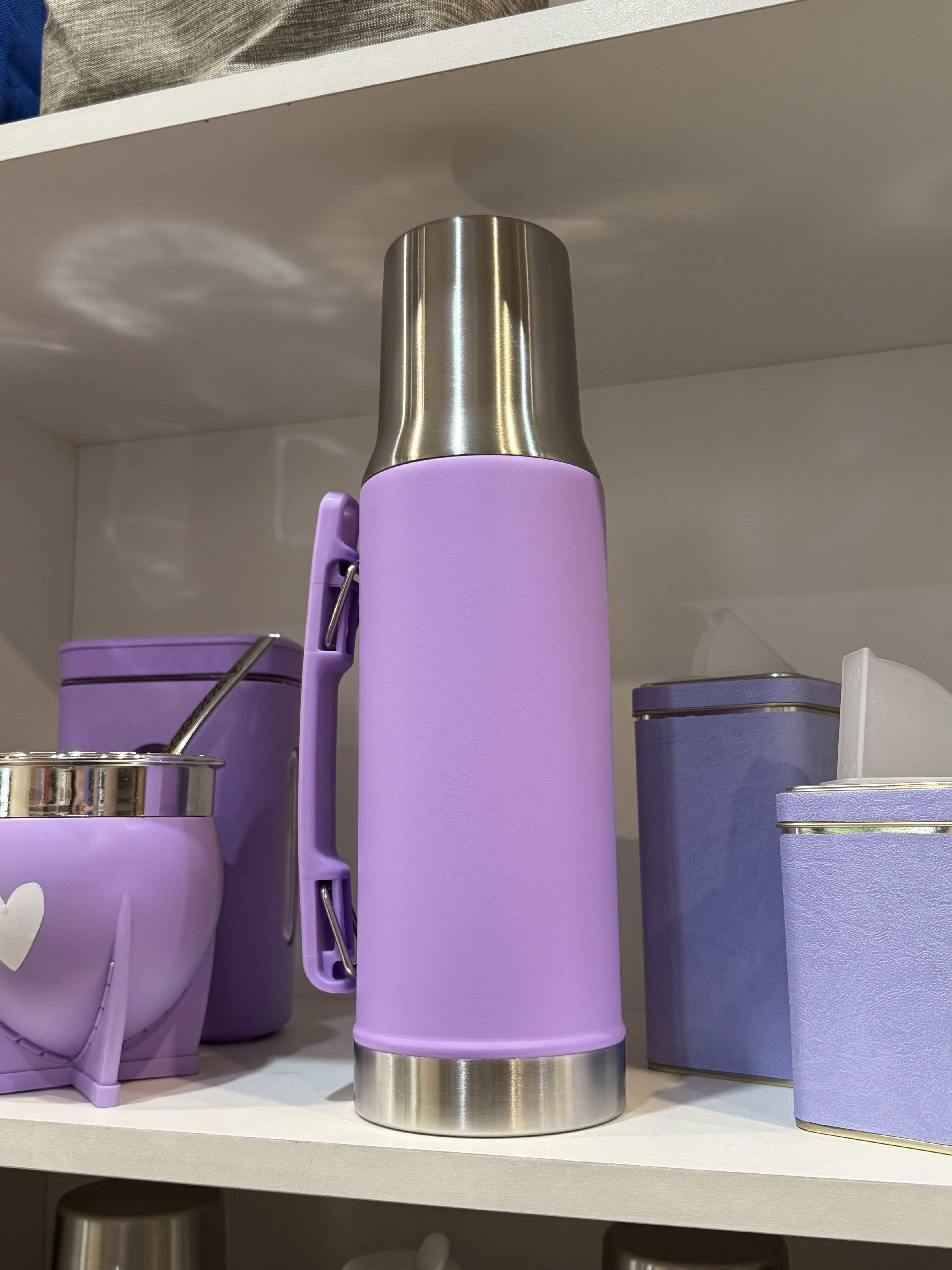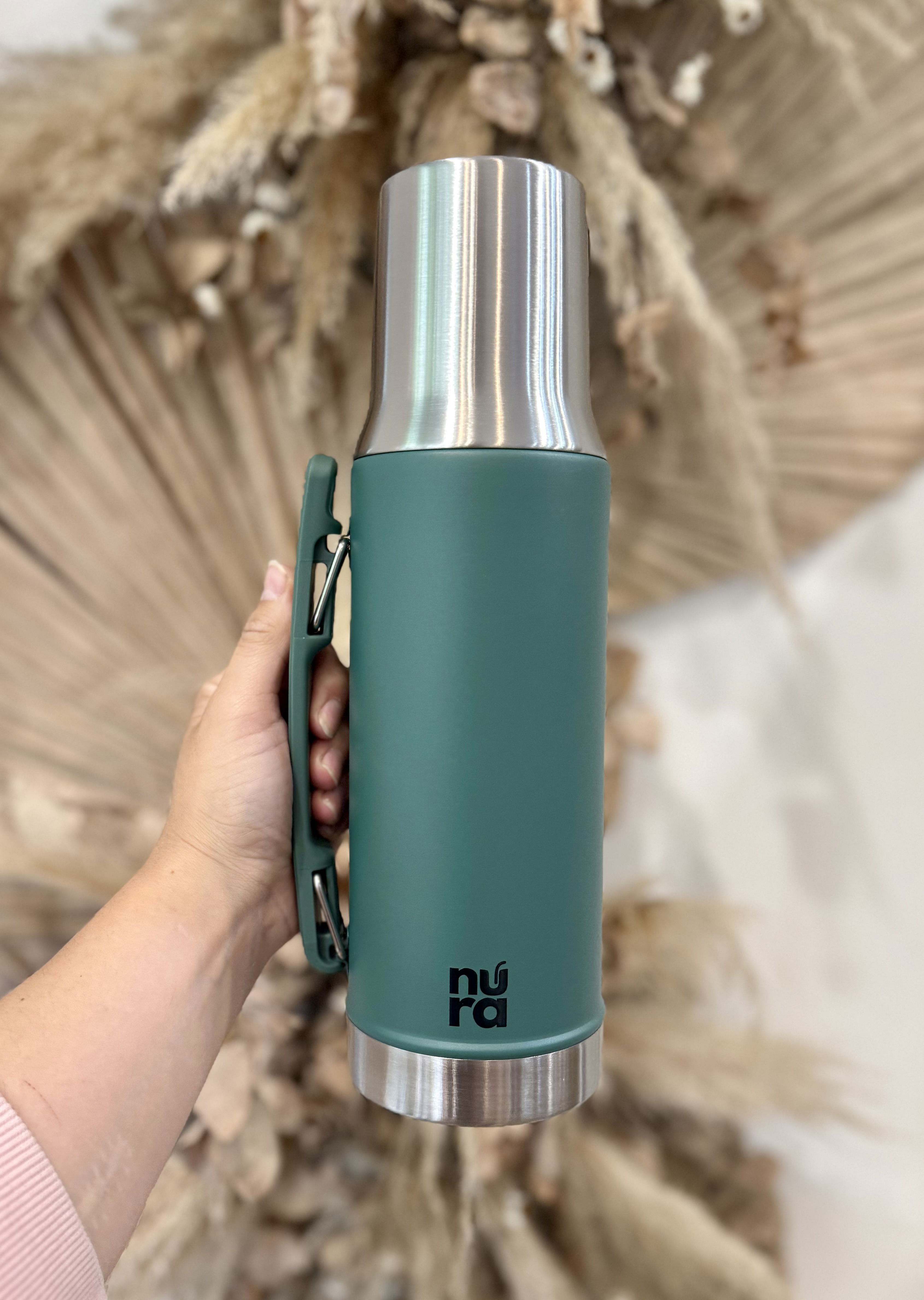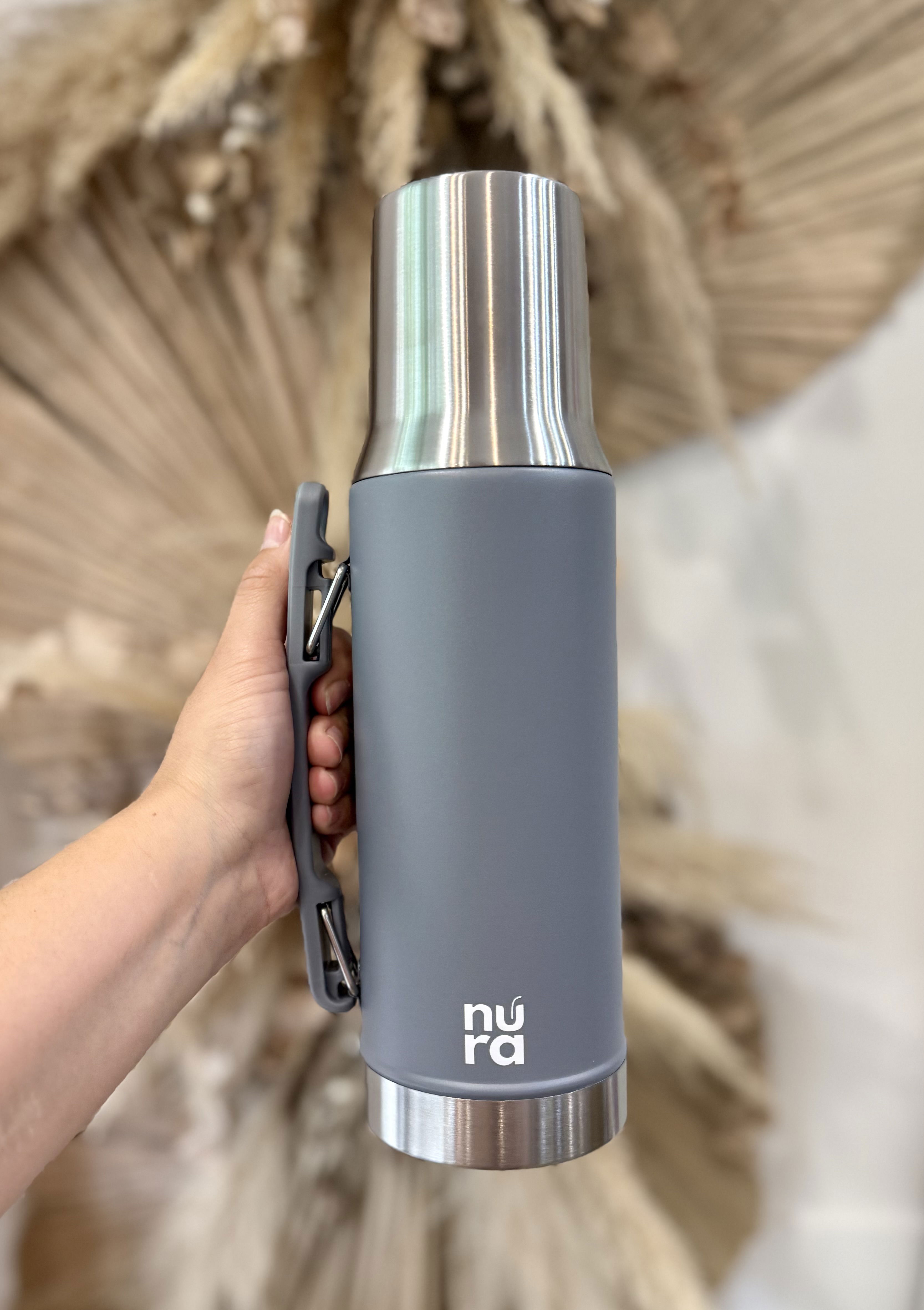 Termo de acero inoxidable tipo system, su tapa es un mate de acero inoxidable doble capa que no se cura y no genera hongos! Todo en uno