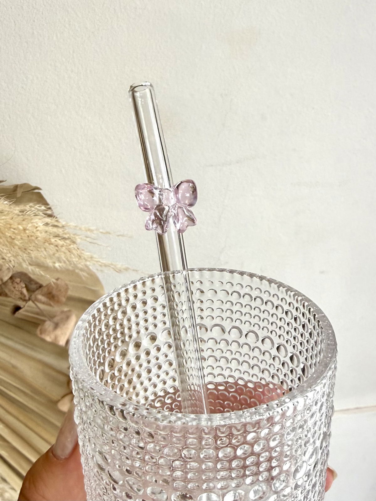 Vaso de vidrio grueso con sorbete de vidrio de moño Ideales para tus bebidas frías, como licuados, cafés, jugos,etc.
