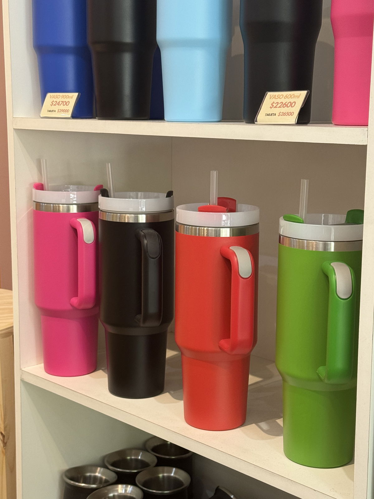 Es de acero inoxidable y mantiene la temperatura caliente y frío