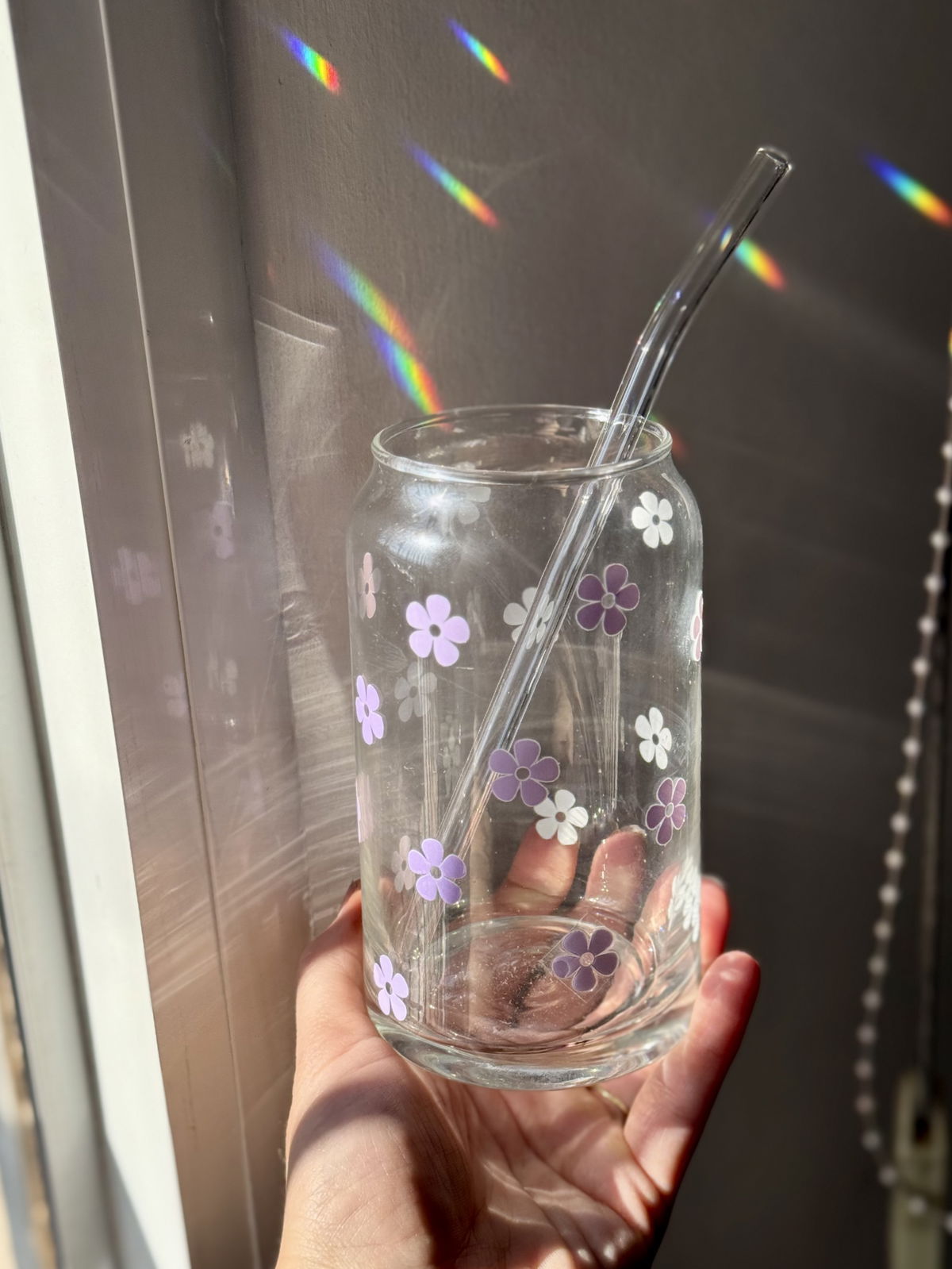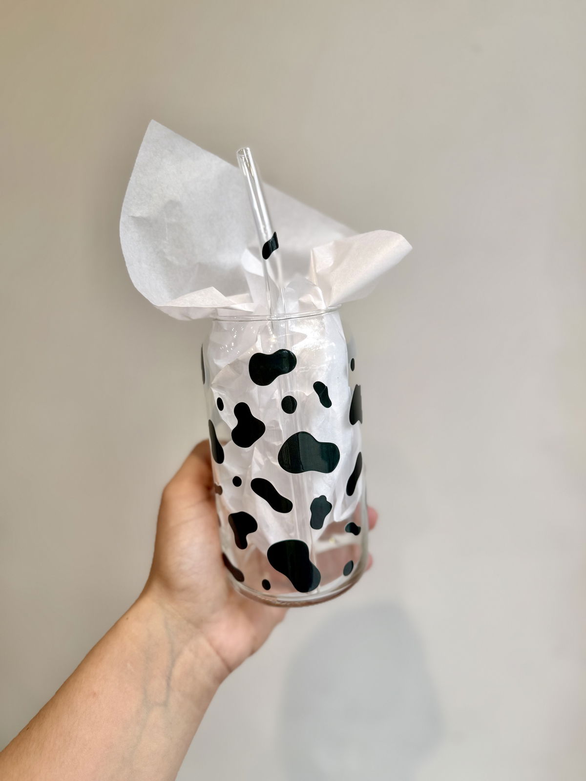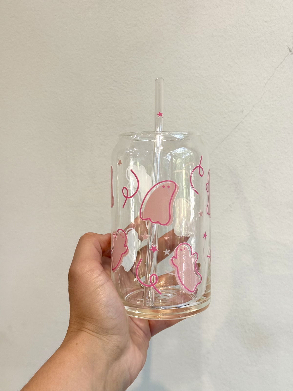 Vaso de vidrio con diseños únicos! Ideales para tomar bebidas frias como licuados, cafés, jugos, etc.