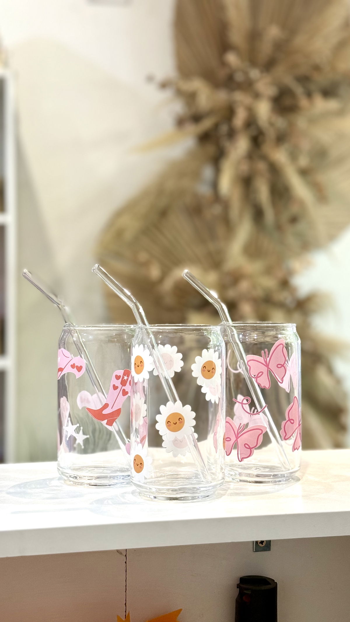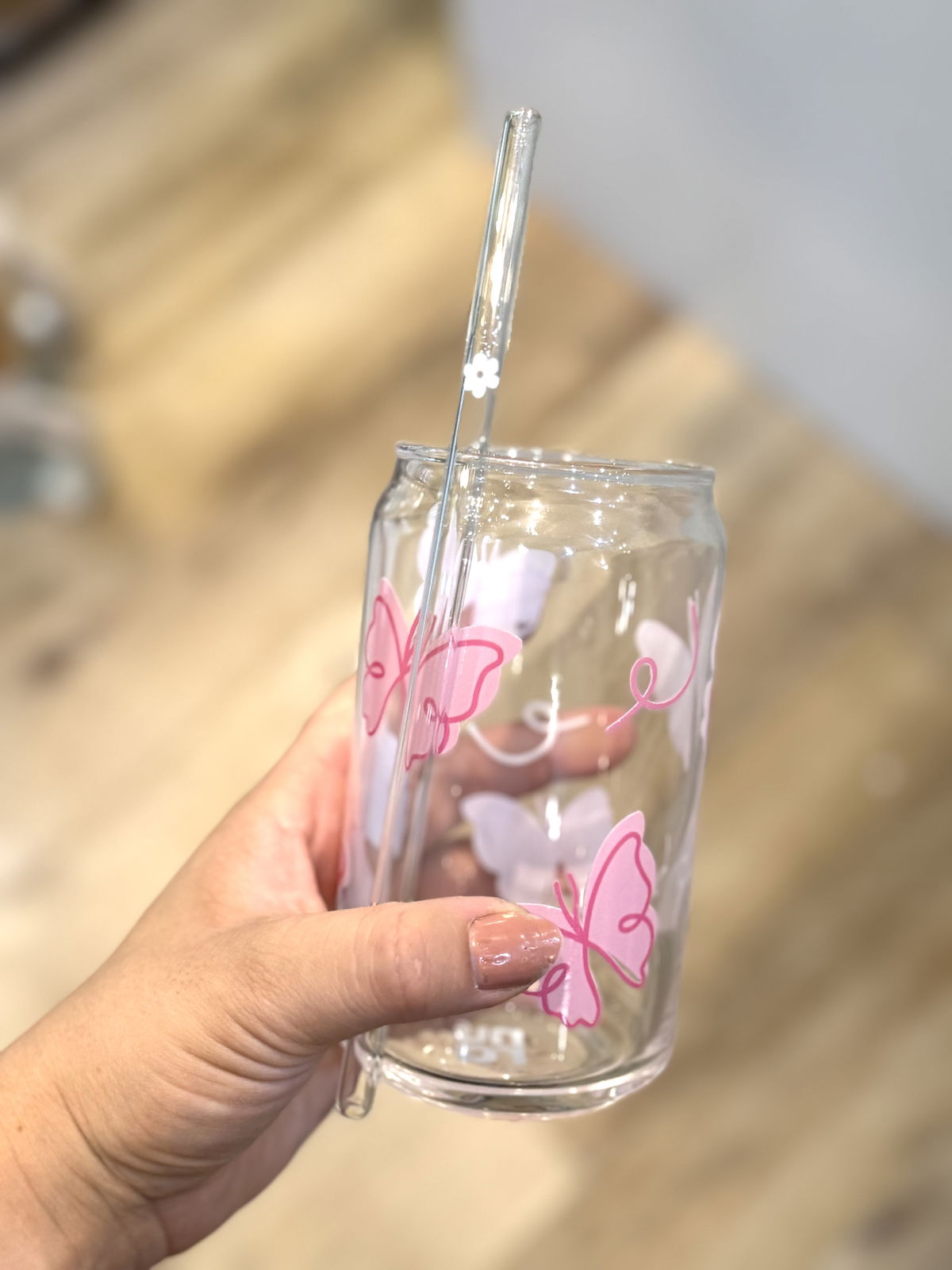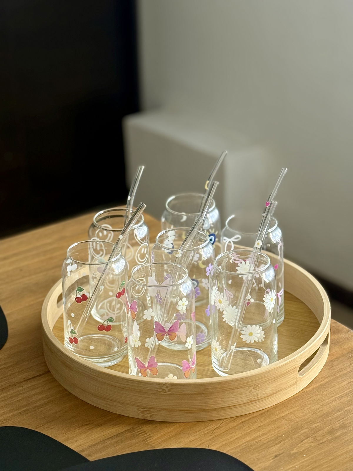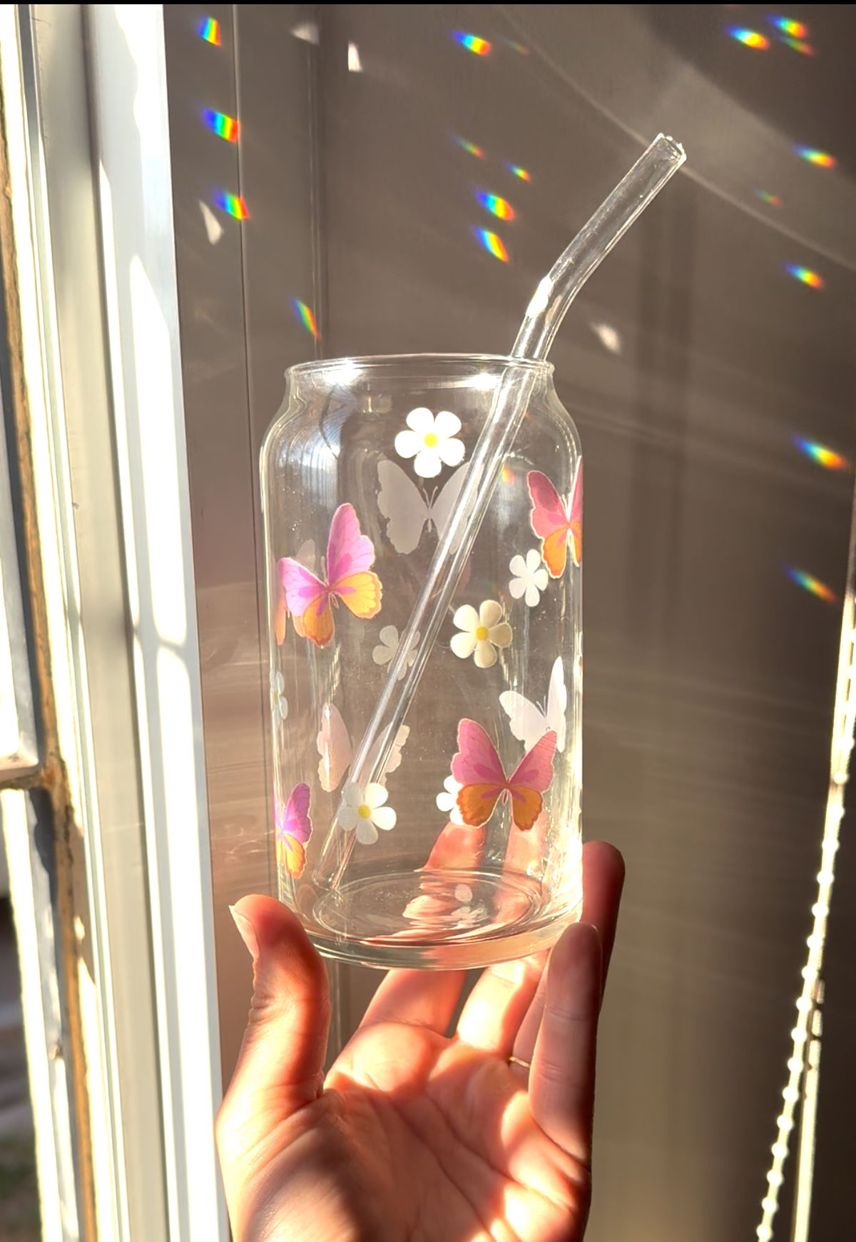 Vaso de vidrio con diseños únicos! Ideales para tomar bebidas frias como licuados, cafés, jugos, etc.